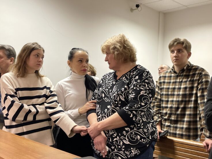 Тамару Хорошилову поддерживали Александра Попова (жена политзаключенного Артема Камардина, слева) и Юлия Кузнецова (адвокат, защищающая многих политзаключенных, в центре). Фото предоставлено изданием The Insider